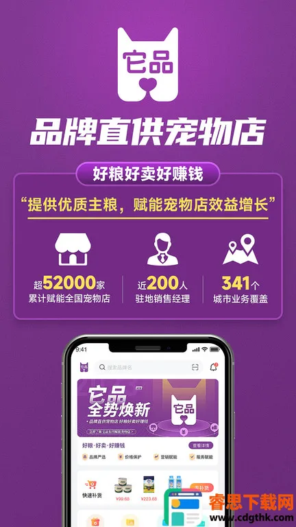 它品APP是重庆禧元信息科技有限公司推出的宠物用品采购B2B平台,采用直供模式,与超162个全球知名品牌合作。提供全方位客服,支持多种支付,为宠物店打造微商城并代运营,功能丰富,购物便捷。