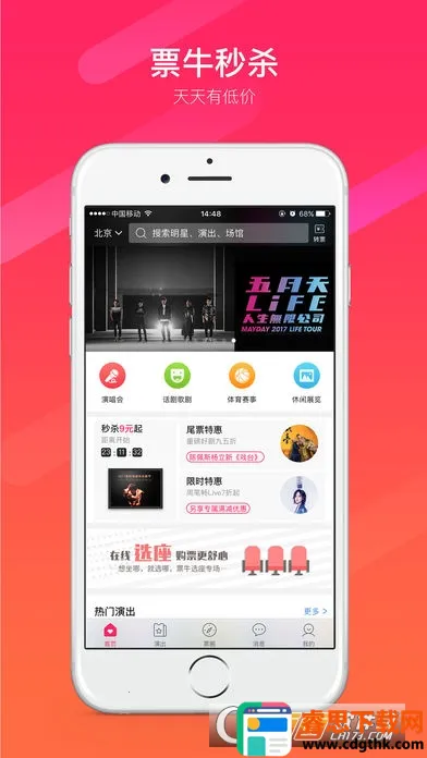 1. 汇聚众多热门活动门票,用户能以低价购票,还有打折优惠或一元抢购活动。