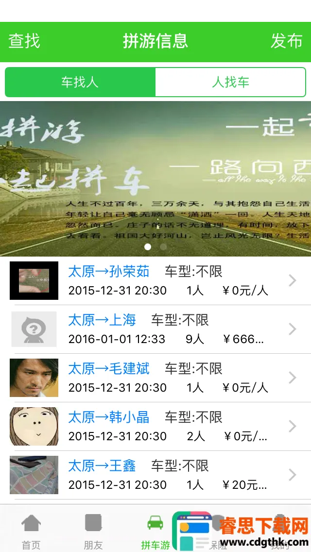 2. 便捷拼车任你行:拼车游是新兴旅游方式,各种拼游方式适合各类人群,想去哪、怎么去、跟谁去都能自己决定。