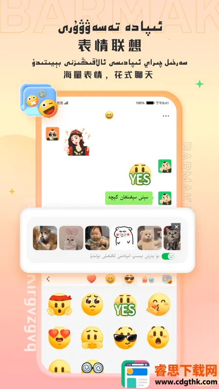 BARMAK输入法是一款出色的维语输入工具,能满足多种语种打字需求。它界面简洁无广告,提供绿色干净的输入环境。智能纠错功能强大,26键输入时可智能判断误触并提供准确候选词。键盘换肤多样,能随意更换。多语言输入方便,任意切换语言可精准输入。还具备一键斗图功能,打字自动生成表情包,增添聊天趣味。其智能语音输入、超强词库云输入等功能也十分实用,能帮助用户更高效地输入文字,是一款值得下载体验的输入法。