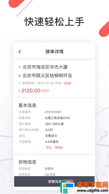 智能派单效率高:具备自动派单系统,能实时推送订单信息,司机可快速掌握订单详情,及时为顾客提供服务,大大提升接单效率,节省时间,让运输工作更顺畅。