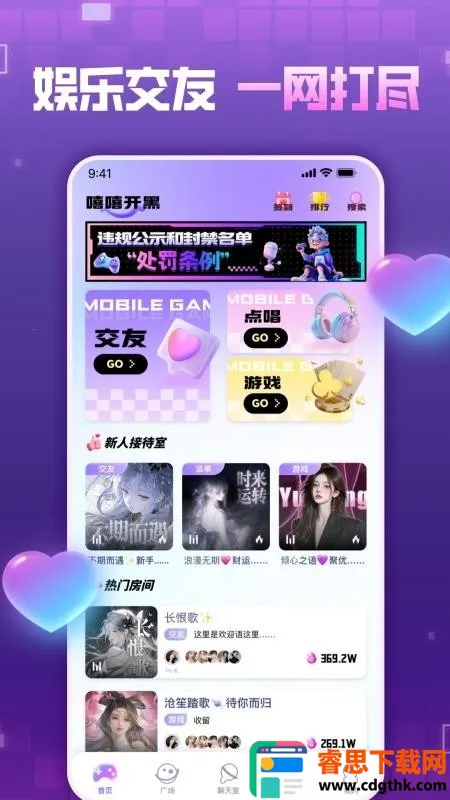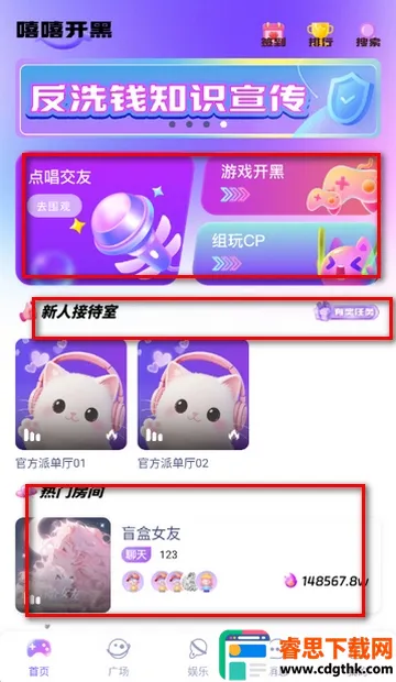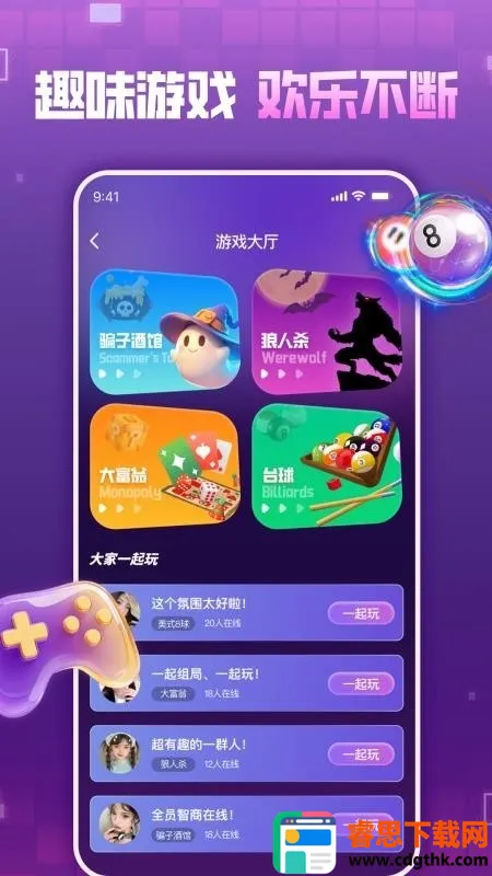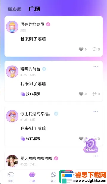 5、点击娱乐页面,可以跟大家一起聊天玩游戏等