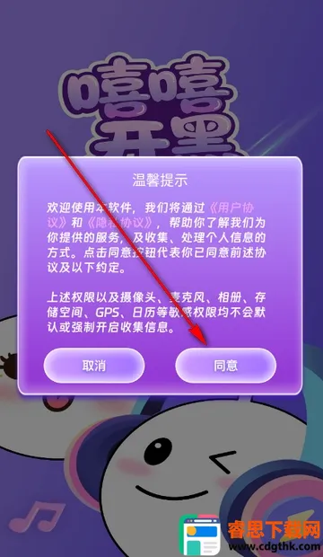 1、打开嘻嘻开黑app,点击同意隐私政策