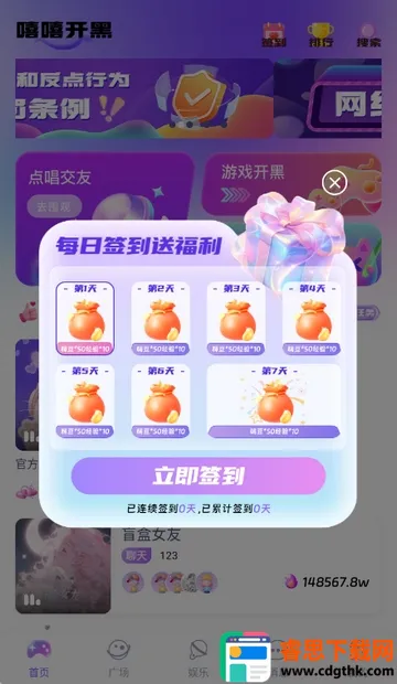 3、进入软件首页,可以进行签到等