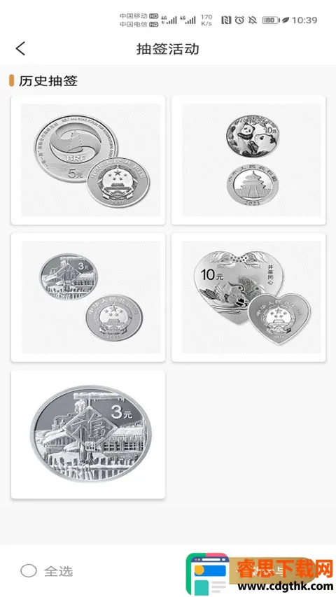 便捷购物体验:支持在线抽签,能迅速选购喜欢的纪念币,挑选产品后可快速结算价格,购物流程高效便捷。