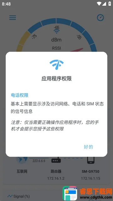 想知道网络信号放大器哪个牌子好?不妨试试网络信号专业版这款软件。它能帮你查看手机wifi和5g4g信号强度,检测手机网络具体状况,测量实时变化数据,适用于日常及专业网络优化场景。软件特色多多,一键就能查看网速状态,让信号强度等不再是秘密。支持全球流行网络标准,提供各层协议网络级信令解码。还有丰富测试功能,像GSM、EDGE等格式实时信令解码都能做到。使用也很方便,下载安装后获取应用权限,允许电话管理权限,打开就能查看wifi信号强度,还能看手机流量信号。左上角菜单可查看信号信息和设置,能按习惯设置显示效果。它能解决网络信号相关问题,带来便利,让你轻松了解家中网络质量状况,为你优化网络提供助力。
