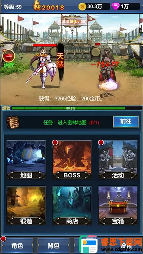 2、玩法丰富多样:不止挂机,能攀登黑暗之塔无尽挑战,在酒馆接受委托,击败黑暗森林boss等。