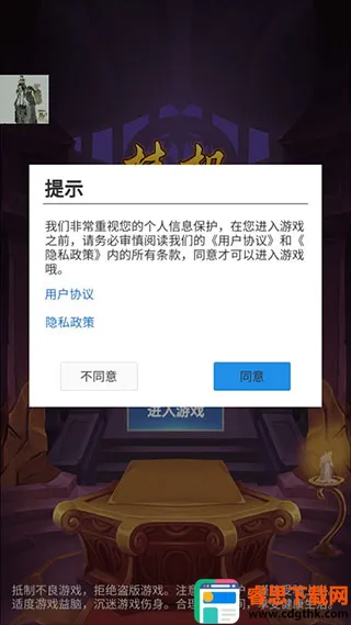 1、在本站下载安装好游戏之后,点击同意并进入游戏;