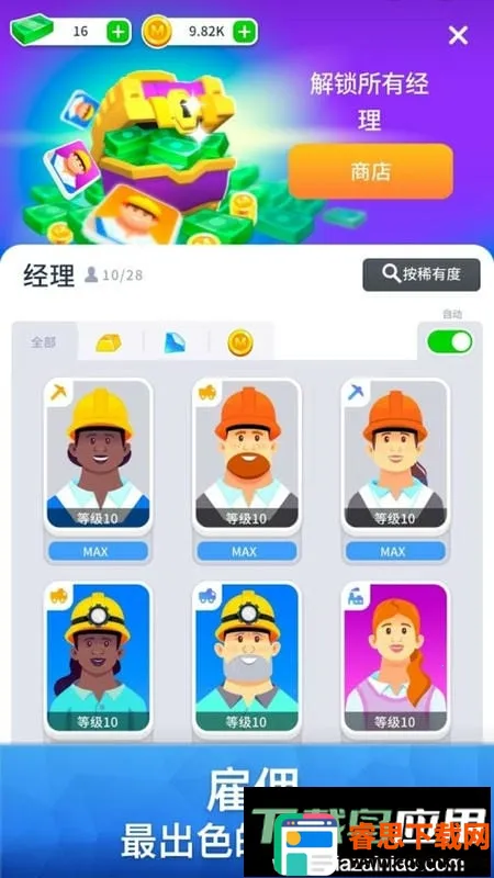 4. 全面管理与资源自动化,雇佣工人和经理,升级设备,让工厂 24 小时不停运作,持续创造财富。