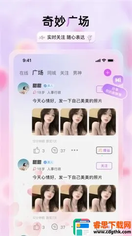 这款社交软件体验很棒!认证方便,进入就能上传个人信息认证。浏览异性动态超有趣,社交广场优质动态多。同城交友能和附近异性私聊互动,交流同城话题。还能随时送虚拟礼物表达心意,视频匹配可随机遇到喜欢的异性。查看对方主页资料很容易,了解个人条件。每天分享动态展示自己,增加交友乐趣。在这里轻松就能找到聊得来的异性成为好友,社交互动氛围活跃,是个不错的交友平台。