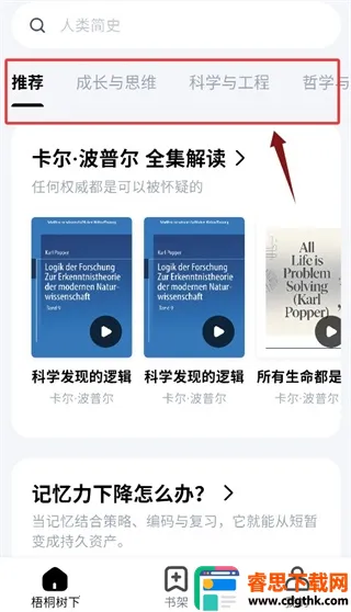 2、在首页的栏目提供了推荐、成长思维与科学工程等分类;