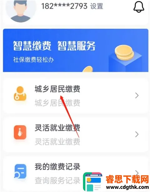 2、然后在登录之后,从“我的”中找到“城乡居民缴费”选项。