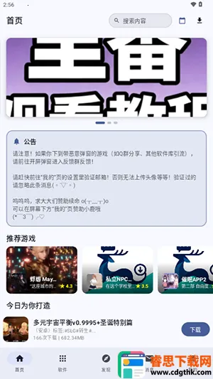 鹿谷社区游戏库是游戏爱好者的福音!它是个超棒的游戏资源与社区交流平台。这里游戏资源超全,不管是ACG、Galgame还是大型单机游戏,通过搜索或类别筛选就能轻松获取,短时间内就能玩到喜欢的游戏。每天推送新游戏动态,热门资讯和新游消息集中整理,让你轻松跟上节奏。玩家能在社区自由交流,吐槽、安利都有人回应。各种游戏福利更新勤快,常能捡到惊喜。资源整合全,想玩的基本都能找到且无需额外花钱。游戏资源推送频率高,分类清楚,还容易发现新游戏,对选择困难的人很友好。而且平台保证资源安全可靠,搜索下载管理流程顺畅,新手也能快速上手。已下载内容支持离线查看,没网也能玩。加入感兴趣的圈子能和高手交流,还能上传分享资源,发帖子评论和分享教程,体验感超棒!