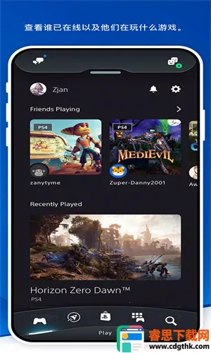 PlayStation(PS游戏社区)由索尼专为PS游戏用户打造,即PSapp。可下载游戏、与主机配对,资源存游戏库。不支持国服账号登录,支持港服。能了解资讯、查看好友、语音聊天、邀好友共玩,还有诸多便捷功能。