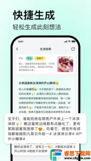 1. 界面简洁易上手:用户界面简洁直观,上手很快,刚下载时不用教程就能开始拍照和添加AI文案,大大简化了新手学习成本。