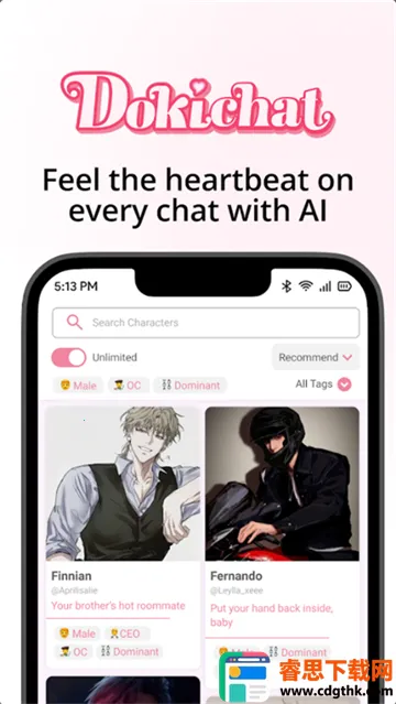 2. 高质量AI角色互动:内置数千种AI角色,各具专属背景、二次元美图及性格特点,让您与虚拟角色对话更有深度。