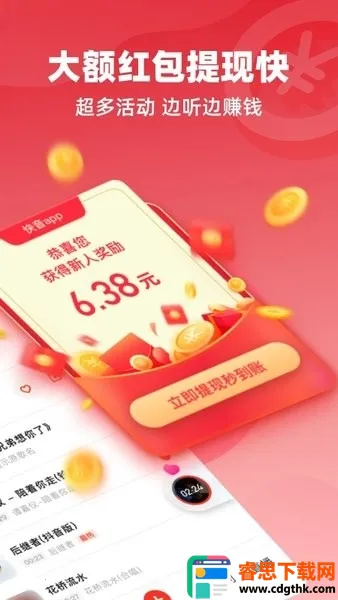 2. 福利多多轻松赚钱:超多红包,正常听歌自动累积金币,还有多种赚金币方式,金币可提现,低门槛提现0.3元到微信钱包。