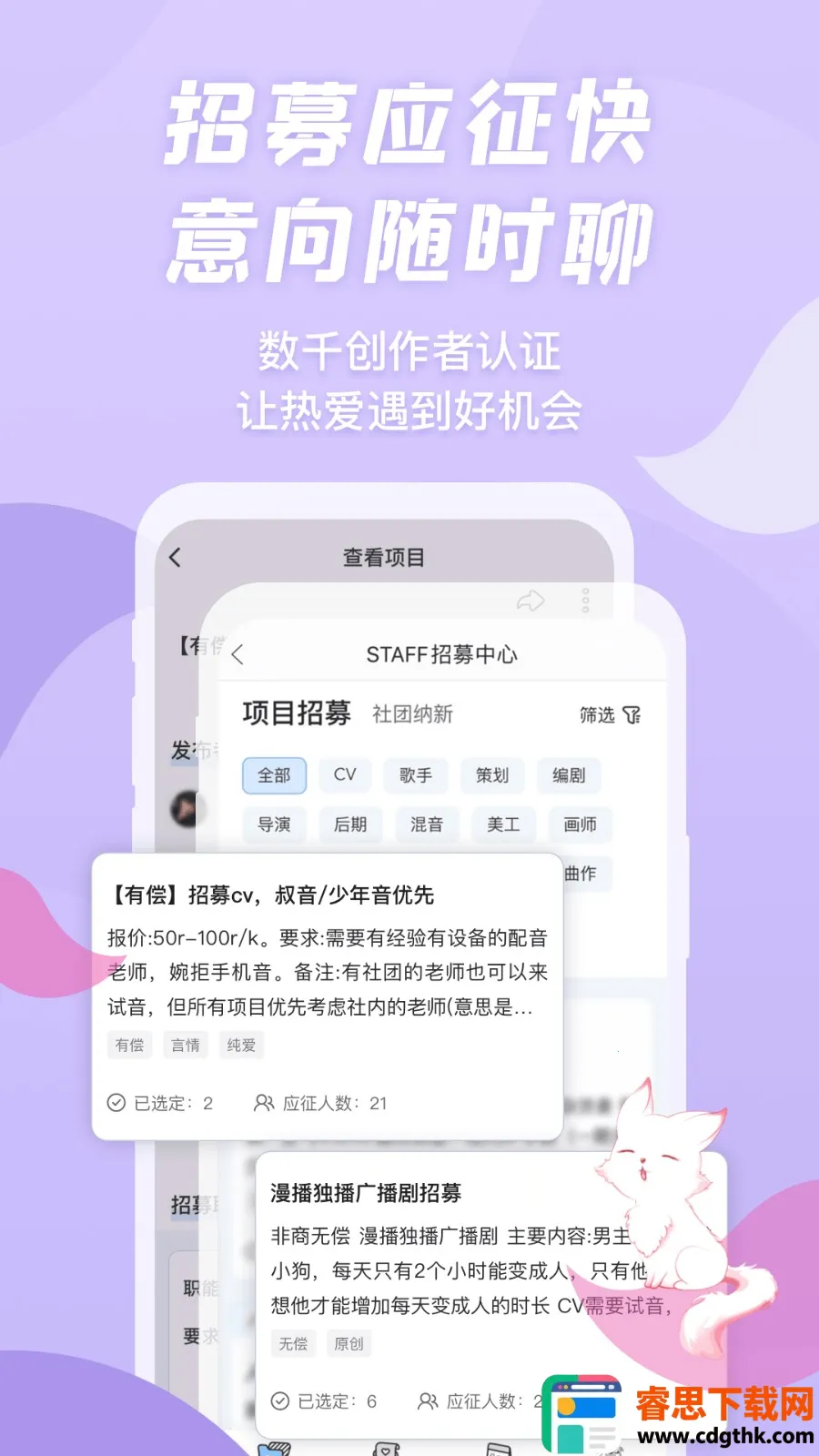 漫播广播剧免费版是二次元听播软件,是声音爱好者聚集地与可视化漫播剧开拓者。有精品漫播剧,海量人气作品改编,打破传统收听模式。声优大咖语音直播,可互动,创作者能入驻享资源,还有多种功能与优势。