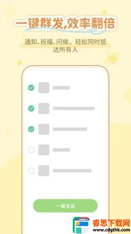 2. 沟通效率大提升:一键群发助手让通知祝福问候等轻松同时抵达所有人,沟通效率翻倍。