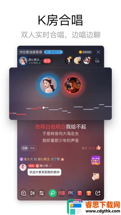 3. K歌直播:支持实时在线演唱互动,为你搭建展示舞台,助力实现主播梦想,与观众互动交流,收获关注与喜爱。