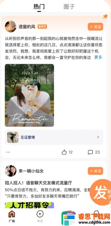 3、进入软件广场热门页面,可查看大家发布的热门动态等