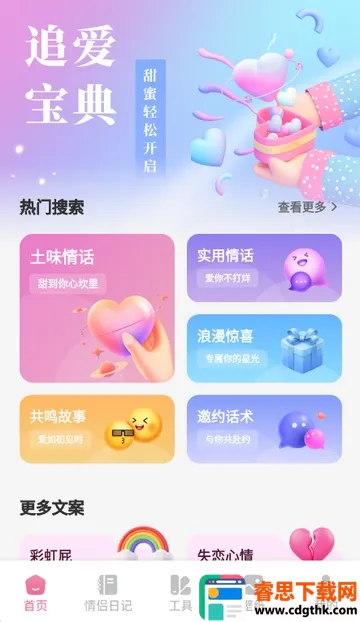 2、进入软件首页,可学习各种实用情话、邀约话术等