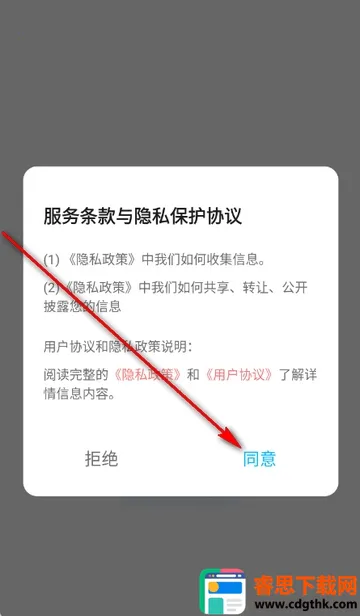 1、打开回聊天app,点击同意隐私政策