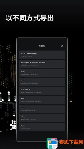 4. 支持多种导出格式:模型可导出为OBJ、FBX、STL等行业标准格式,能与主流3D软件无缝衔接,方便在多领域使用。