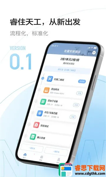 睿住天工APP是一款智能家居批量安装调试交付的管理软件。它能帮你建立规范化流程和标准化操作,大大提升工作效率。这里有多种便捷功能,像点位匹配、虚实映射、云端物联关联等,操作起来超方便。师傅信息一键添加,一目了然。云端场景一键下发,省时省力还能提质提效。用户可以一键下发,快速提升使用效率。它还提供全面的设备管理,能快速绑定设备,实现远程控制。系统会推荐各种场景模式,满足不同办公需求。更新日志显示,它解决了已知问题,部分功能和体验也得到了优化。不管你是智能家居安装调试师傅,还是相关办公人员,这款软件都能帮你更好地完成工作,提供便利,是提升工作效率的好帮手。