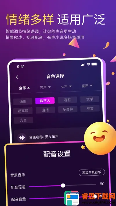 这款软件表现出色。其一键复制功能能高还原语音,保留情感细节,仿佛另一个自己在发声。操作简便,初学者也能快速上手。多种音调选择丰富创作,可满足不同需求。实时预览方便调节音效,语音识别功能实用。适合多种场合,不管是录音还是制作字幕都很出色。内置降噪功能让声音更清晰,还提供多种音色模版,能一键套用轻松配音。自由调整语速音量,还能添加背景音乐,是一款非常便捷有趣的配音工具,能助力创作特别的音乐作品并分享。