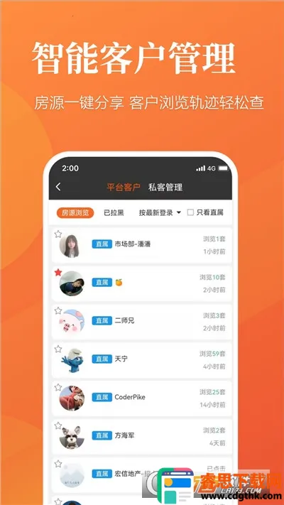 2. 访客浏览轨迹轻松看:能智能分析客户浏览房源情况,包括喜欢的价位、户型、小区以及在线频繁时间等,助您更懂客户,实现数字化运营,高效精准成交。