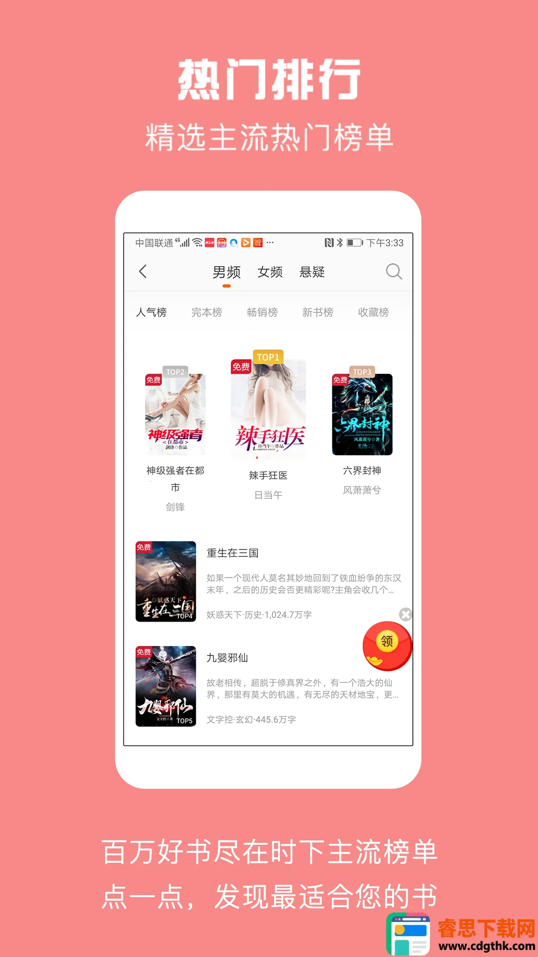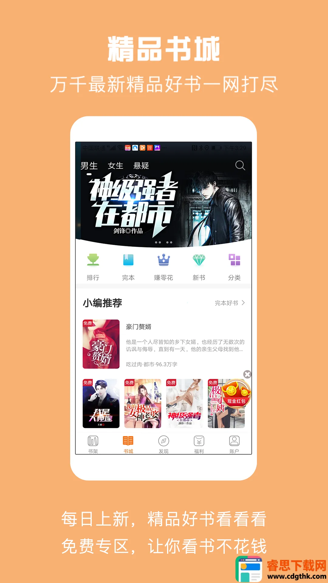 3. 分类详细,有男频和女频模式,书城类目每周更新,新书热书有限免。