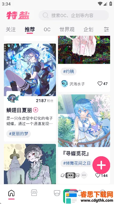 3. 优质内容展示:OC广场有精美的卡片展示,首页推荐OC档案卡和世界观,还有多样捏脸模板,任选心仪形象,能让用户沉浸在二次元世界中。