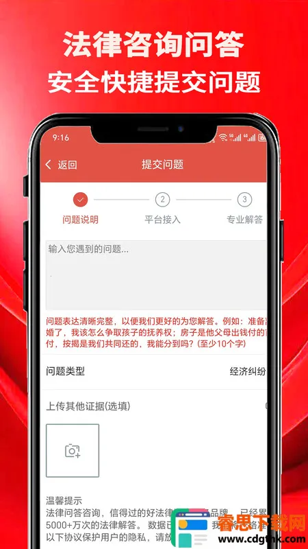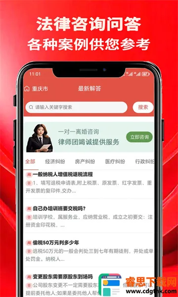 想找“法律咨询问答案例大全”?有款超棒的法律咨询问答app能满足你!它能为咱解决各类法律问题。通过图文描述或电话咨询,能快速连接专业律师。不管是劳动纠纷、离婚咨询,还是其他法律问题,都能在这里找到答案。它提供合同起草、法律文书审核等实用服务,支持一键委托处理。首页有快速咨询律师功能,涵盖多种法律问题类型。最新解答页面展示用户提问与律师回答,还能按纠纷类型筛选。提交问题界面引导清晰,填写问题说明、上传资料,选好纠纷类型提交就能获取专业解答。法律知识板块有各类常见法律问题文章。“我的”页面能查看提问记录、收藏内容等。这app咨询方式多样,律师服务全面,合同文书支持完善,法律知识库完备,能帮咱提升法律认知,轻松解决法律难题,超便捷!