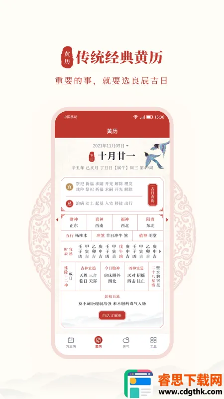 全民日历2026(现全民万年历)是集新历农历黄历、天气查询与日程管理于一体的日历应用。融合多种历法,提供精准天气数据,页面简洁有国风设计,能助用户轻松管理生活,把握重要时刻。