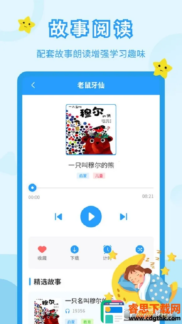 3. 下载功能实用,喜欢的故事一键下载,没网络时也能离线收听,方便孩子随时听故事。