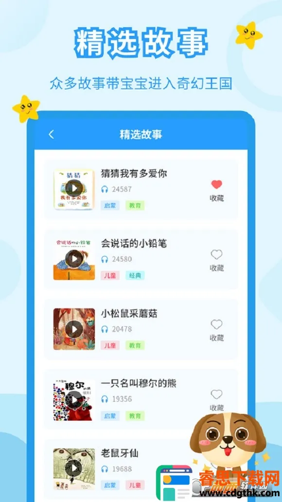 4. 家长便捷管理:家长能在收藏夹整理常听故事,查看播放记录,依据孩子兴趣快速找到相似内容继续播放。