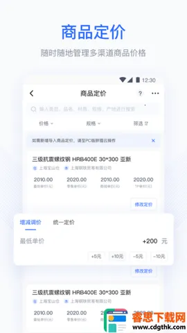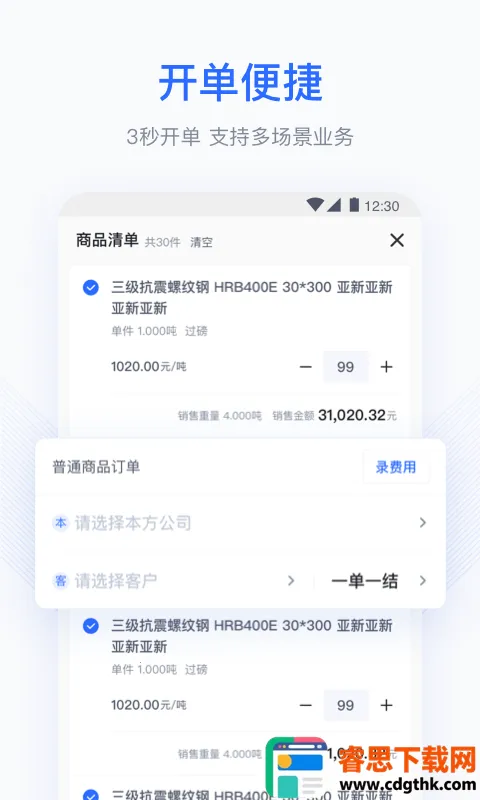 1. 全场景业务管控:支持多种交易模式,采购、销售、库存、财务等模块清晰易懂,覆盖钢贸全流程。