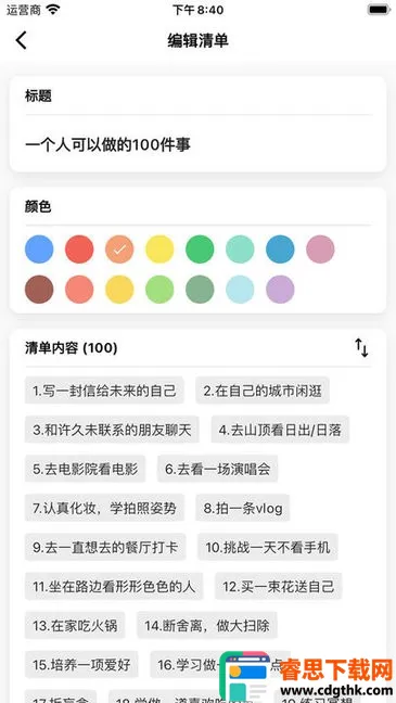 1. 拥有丰富多样的清单列表,无论是学习、旅行还是体验等方面,都能为用户提供灵感参考,帮助用户制定出属于自己的人生清单,让人生过得有价值、有意义。