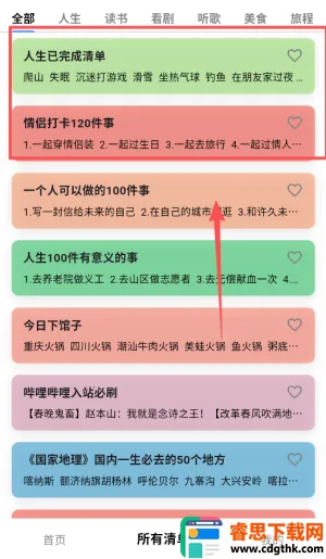1. 拥有丰富多样的清单列表,无论是学习、旅行还是体验等分类,都能为你提供灵感参考。