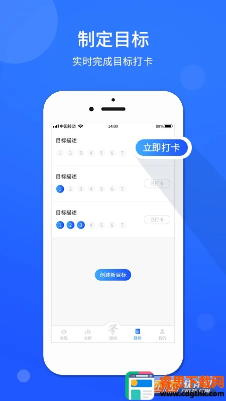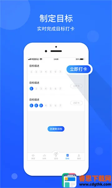 3. 提供打卡功能,支持实时查看每日、每周、每月总体运动数据分析。