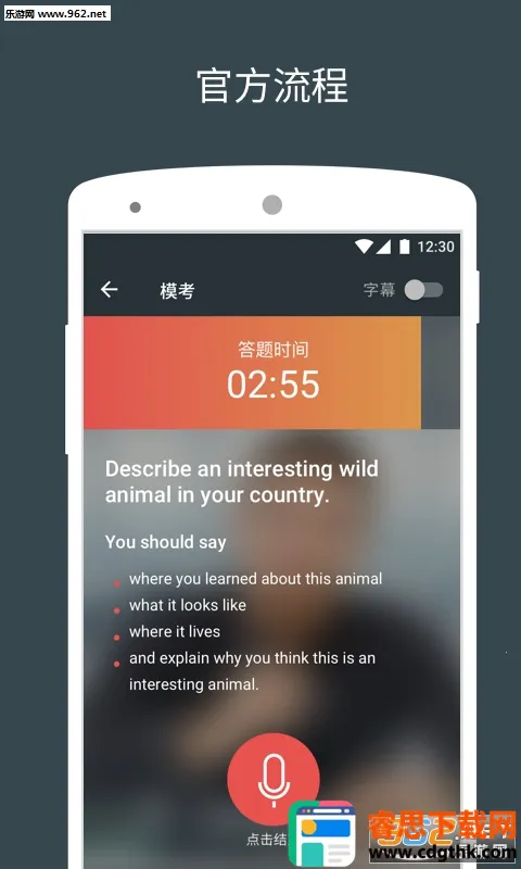 2. 多国真人考官口语一对一模考,适应不同口音和语速,真实还原考试现场,摸清口语分数。