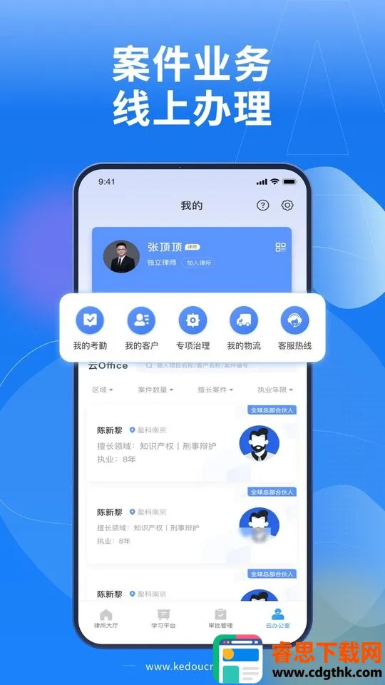 1. 便捷云办公:即使不在律所,也能利用它办理案件业务,不影响工作效率,真正实现云端办公室,将办公装进手机。