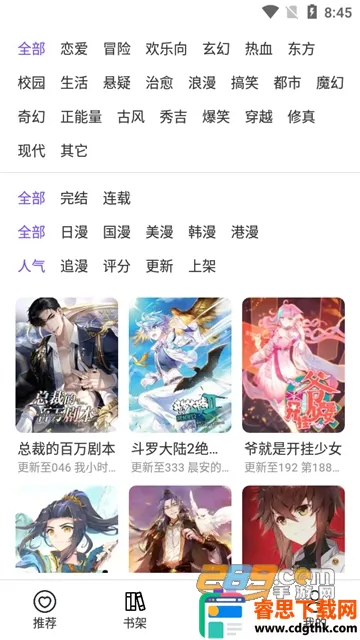 漫士多漫画是一款超棒的免费漫画软件。它资源超丰富,各类漫画应有尽有,从全彩到黑白,长篇到短篇,持续更新的都有。免费这一点太赞,海量漫画随意看,直接加入书架还能及时收到更新通知。界面操作简单,阅读模式多样可自由切换,像翻页模式、滚动模式等体验感佳。而且能自动缩放比例,光线也能自由调节。每天实时更新,离线下载也支持,随时随地都能畅享漫画乐趣,真的是漫画爱好者的福音。