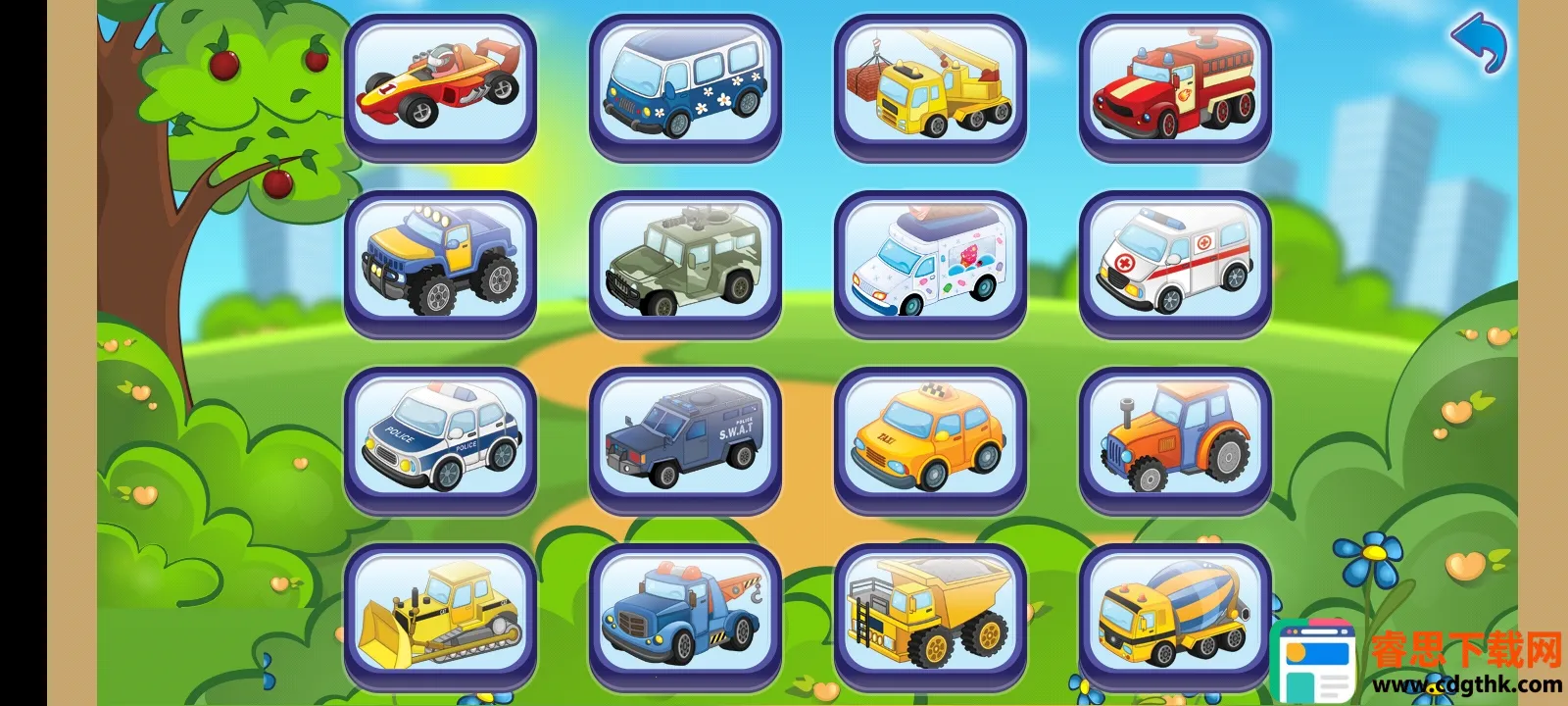 儿童汽车乐园2026是一款适合0-7岁儿童的益智娱乐软件,有诸多汽车等元素。能满足孩子娱乐需求,操作简单,有生动动画和声音,可助孩子认识汽车、锻炼能力,免费无收费项目,快来下载体验。