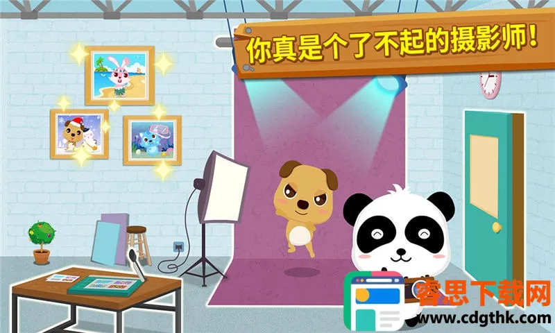 游戏操作简单,画面可爱活泼,色彩协调,能吸引宝宝注意力,营造愉快氛围。它寓教于乐,将职业知识融入游戏,让宝宝在玩中学习成长。设有多种拍摄场景和任务挑战,还有丰富的摄影道具与装饰品。完成的作品可保存纪念,激发成就感。家长们快来百度手机助手下载,让宝宝开启有趣的摄影之旅吧!