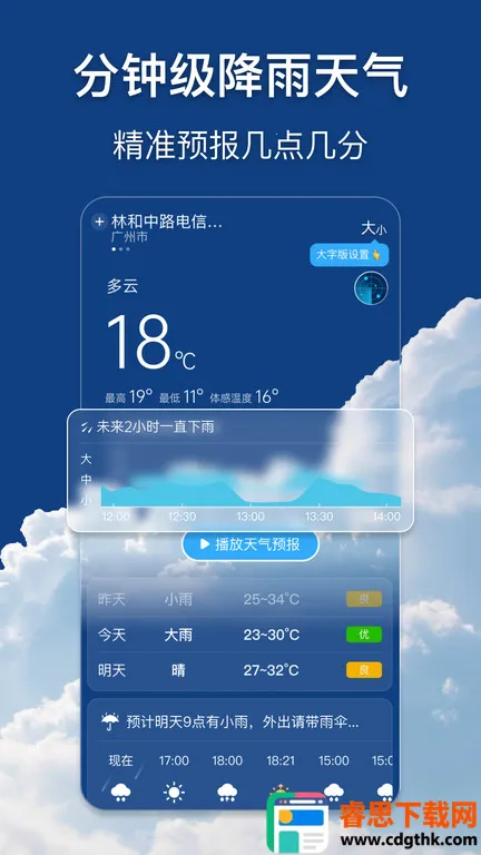 1、精准预报:提供非常精准的天气预报,让用户获取详细天气信息,无论是当天还是未来多天的天气趋势,都能方便合理安排出行。