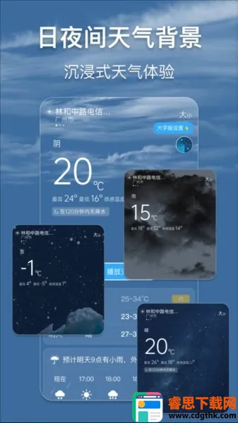 3、背景同步:天气背景会按当前天气同步,提供沉浸式天气体验。日夜间天气背景,让用户感受更便捷。