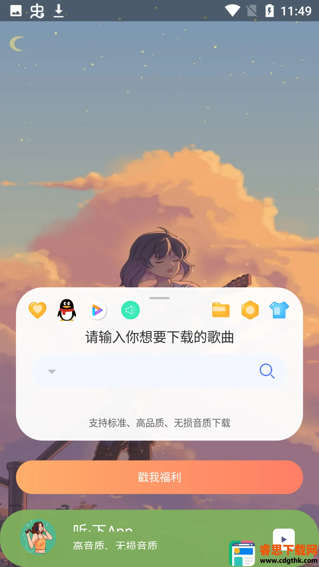 2、优质音乐搜索与下载功能:准备了优质的音乐下载和搜索功能,可按歌名或歌手搜索,一键获取喜欢的音乐资源,随时欣赏优美动听的歌曲。
