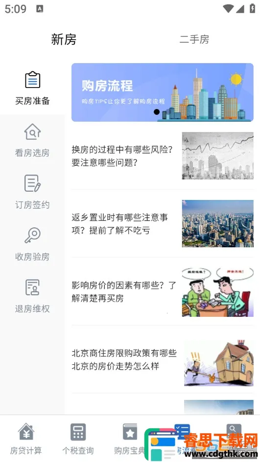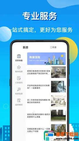 3. 购房资讯丰富:涵盖购房流程、准备、手续等购房宝典内容,省去查找资讯资料的时间,提供购房相关帮助。